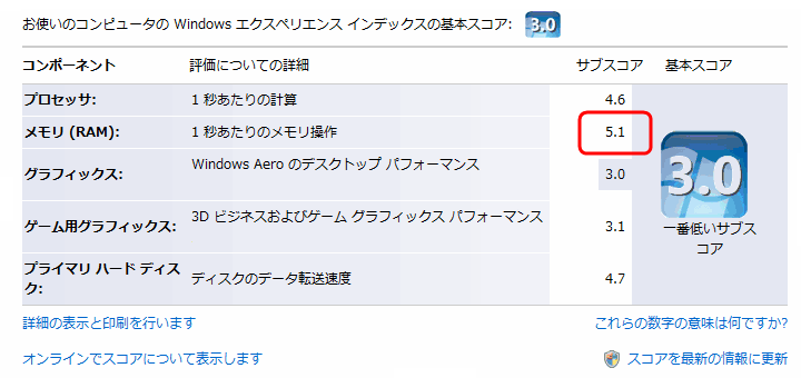 ※ 最近メモリというと、USB 接続で使えるフラッシュメモリーなどを連想される方がおられますが、ここではシステムメモリについて書いています。