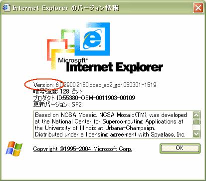 インターネット接続は、外部のたくさんのコンピュータと接続して情報を受けるために、色々な危険も伴います。そのため、インターネット・エクスプローラーも年々改良され、より使いやすく、セキュリティー上も安全なものになって来ています。Windows のパソコンを買った人は、その新しいバージョンのインターネット・エクスプローラーを無料で手に入れられるようになっています。まめにマイクロソフトのアップデートをされている方は、既にインターネット・エクスプローラーのバージョン6になっていますが、5とか 5.5など6以前の方は、早めにアップデートをして、バージョンを6以上にしておきましょう。