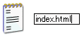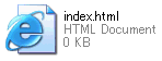 そうするとさっきまでテキストファイルだったファイルが、左図のようなインターネットエクスプローラーのアイコンの html ファイルになっちゃうんだね〜。(ネットスコープナビゲーターを使っている人は、ネットスコープのアイコンの html ファイルになるよ。)