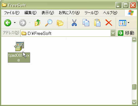ご自分のパソコンに、tpad089.exe を保存された方は、保存先のフォルダを開いて tpad089.exe をダブルクリックします。↓
