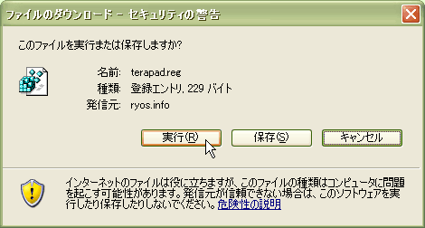 terapad32.reg か、terapad64.reg を保存し、保存先フォルダを開いて terapad32.reg か、terapad64.reg ファイルをダブルクリックして実行してください。 |