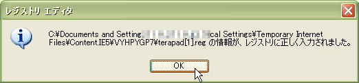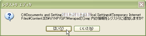 ■ インターネット・エクスプローラーが9でない人で、terapad.reg を利用する場合は下記の説明にしたがって操作してください。