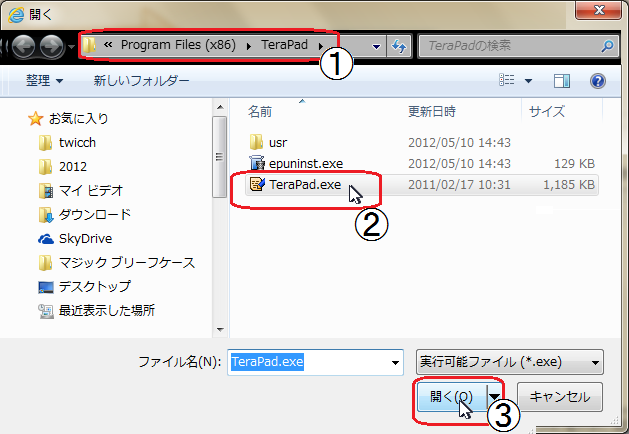 C:\Program Files (x86)\TeraPad を開き、TeraPad.exe を選択して開きます。