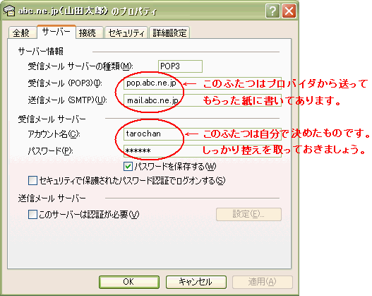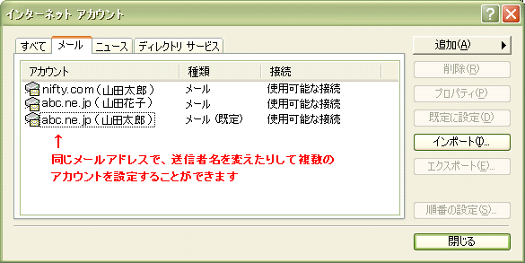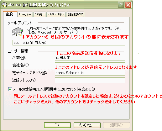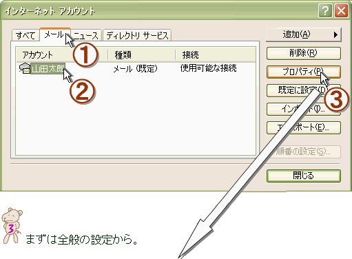 メール・アカウントのプロパティ の設定について詳しく見てみましょう。