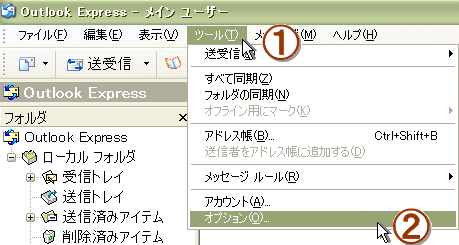 Outlook Express のメニュー・バー [ツール] → [オプション] の順にクリックし、
