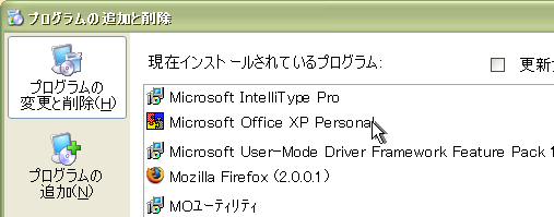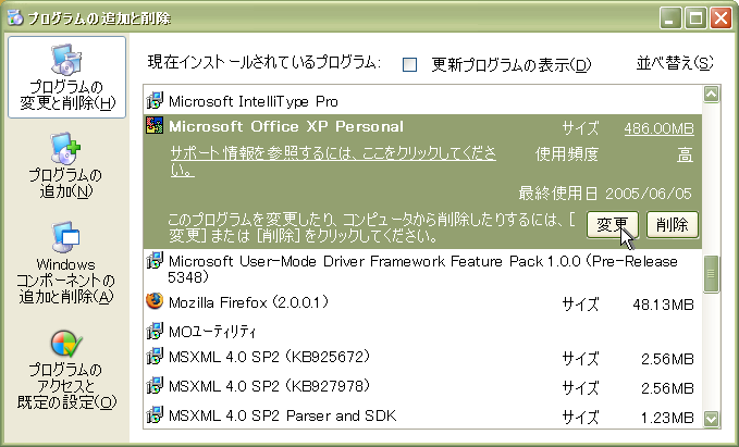 3. [Microsoft Office XP Personal] の右下にある [変更] をクリックします。 |