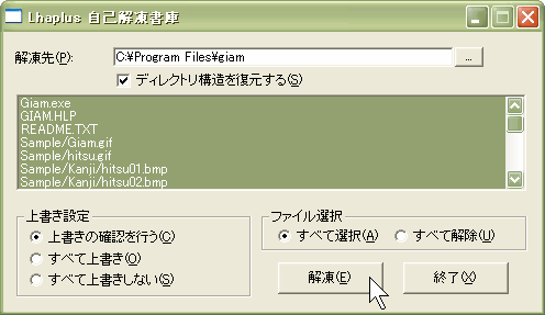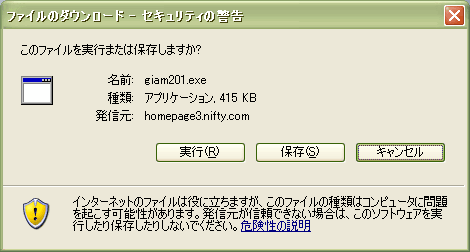 保存先を問われますので、CディスクのProgram Files の中に、新しいフォルダを作って giam と名前をつけ、その中に保存して下さい。