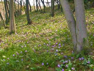 きょうの活動は、炭焼き小屋東側の斜面の笹刈りをメインに行いま したが、すでに残したい植物の葉がでているので、刈り払い機を使わ ずに、全員鎌で作業をしました。作業中近くにお住まいの方が話しか けてこられたので、雑木林の草花を増やすために笹を刈っていること や会の活動日などを説明しました。こういった何気ないふれあいの積 み重ねが、会の活動への理解や協力を生むものだと考えます。 そのご近所の方が教えて下さったのですが、ひとつの笹に花穂がた くさんついていました。これは、珍しいことです。 炭焼き小屋前の桜並木にはまだ花がたくさん残っていたので、その 桜を見ながら皆で昼食を食べました。 昼食後、2月の活動で少ない人数でがんばって笹刈りした場所を見 に行きましたが、花が見事に咲いていて大勢の人が訪れていました。 本当に苦労して笹を刈った甲斐がありました。