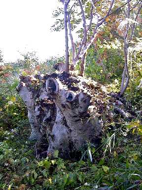 ![]() 切り株を裏側から見てみると、中が ぽっかりと空洞になっていました。 そしてその中にはペットボトルなど のゴミがたくさん…。 (;;) |