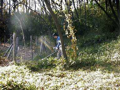 きょうの活動は、早いもので今年最後の活動となりました。9月に 笹や草を大まかに刈ったカタクリの生息場所を刈払機などで、きれい さっぱりと刈りました。時間の関係で全部できませんでしたので、残 りはまた来年行なう予定です。 |
