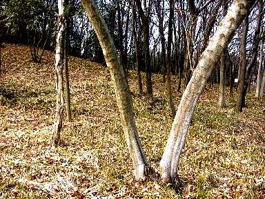 ![]() 真中の木にご注目! この辺の木は皆 枝が向かって右方向にしか出ていませ ん。風向き日照方向の影響でしょうか。 |
