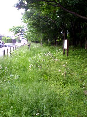本日の活動は、伸び出した散策路の草刈りと、その作業場所のゴミ拾い。それに、緑地の看板を作る者とに分かれて作業をしました。 |